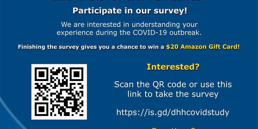 Scan the QR code or use this link to take the survey: https://is.gd/dhhcovid19study